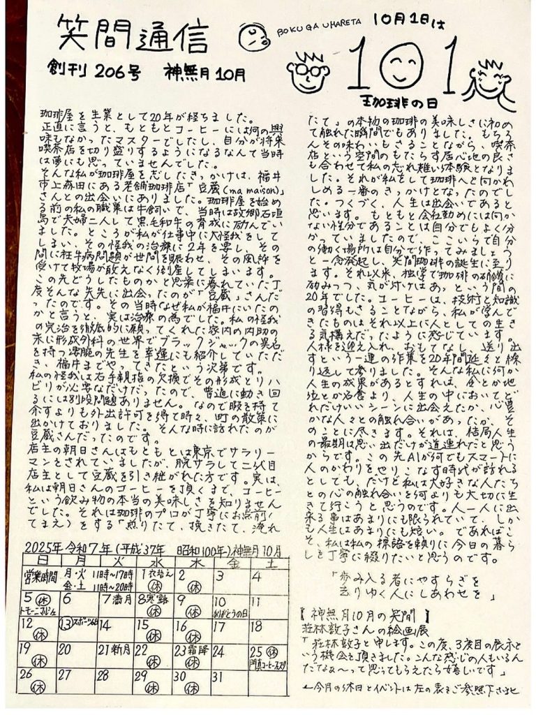2025年笑間通信10月号(創刊206号)