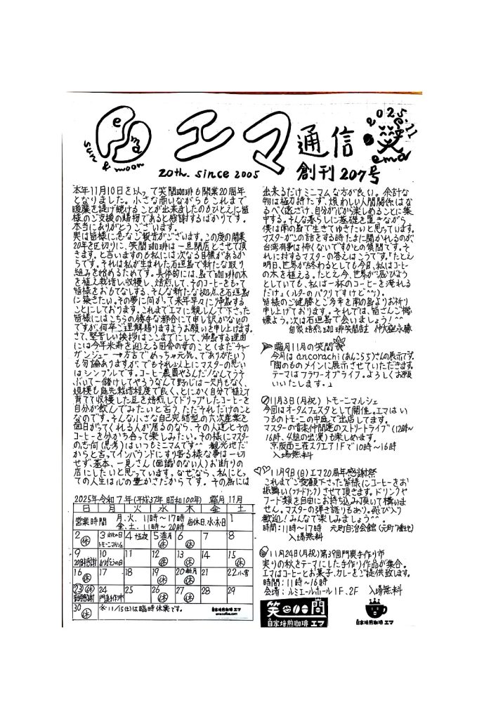 本年11月10日を以って笑間珈琲も開業20周年となりました。