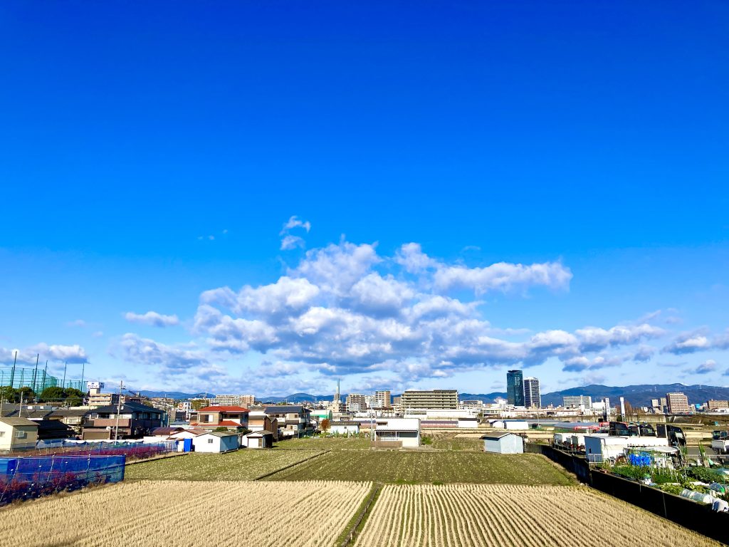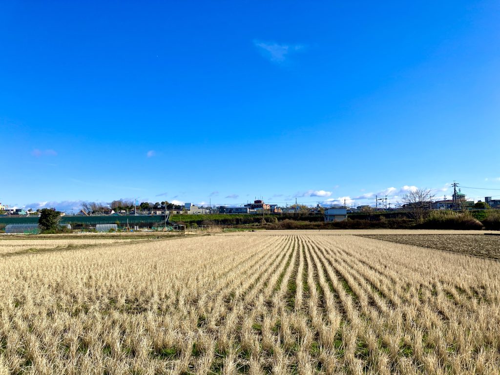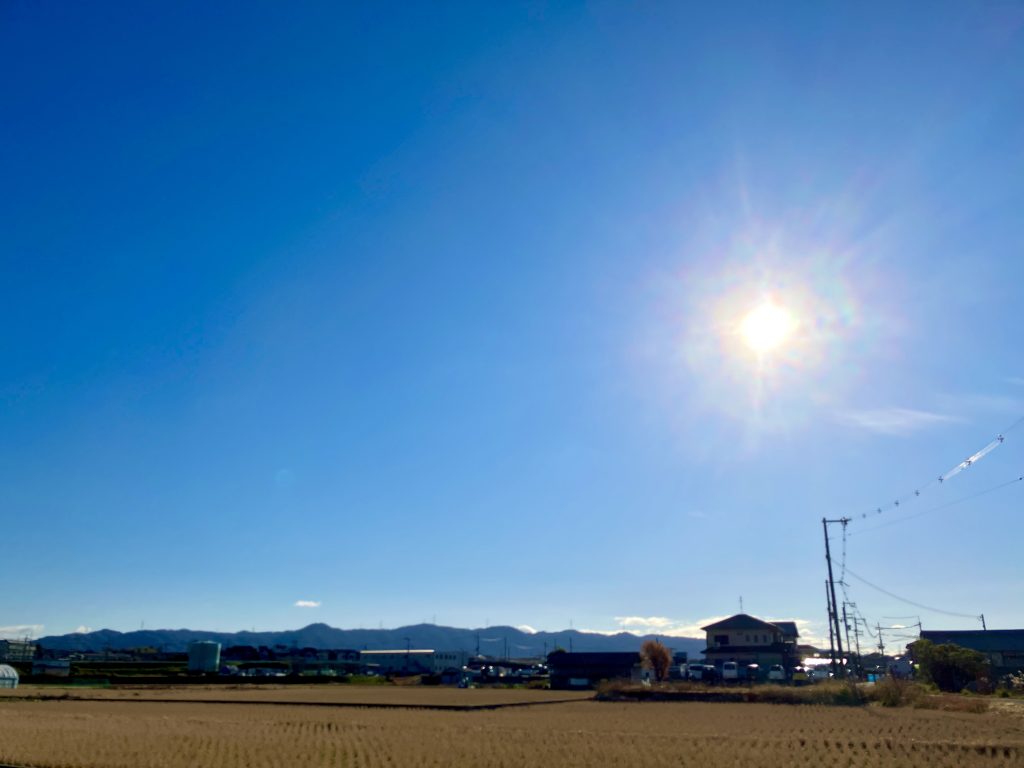新年明けましておめでとうございます 新年は枚方にあるママの実家で迎えました。 あらためまして、 新年明けましておめでとうございます。 とても穏やかな元日の朝を迎えております。 初日(はつひ)も心地よく田地も温(ぬる)む郊外の清しい朝ですが、早速元日から畑で鋤を振るう達者なお爺さんに出会い元気を頂きました。 実りと恵みの豊かな佳き年となりますよう祈念申し上げます。 寒凪の凍てる土鋤く老いた人