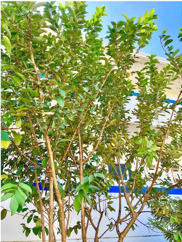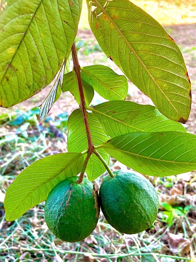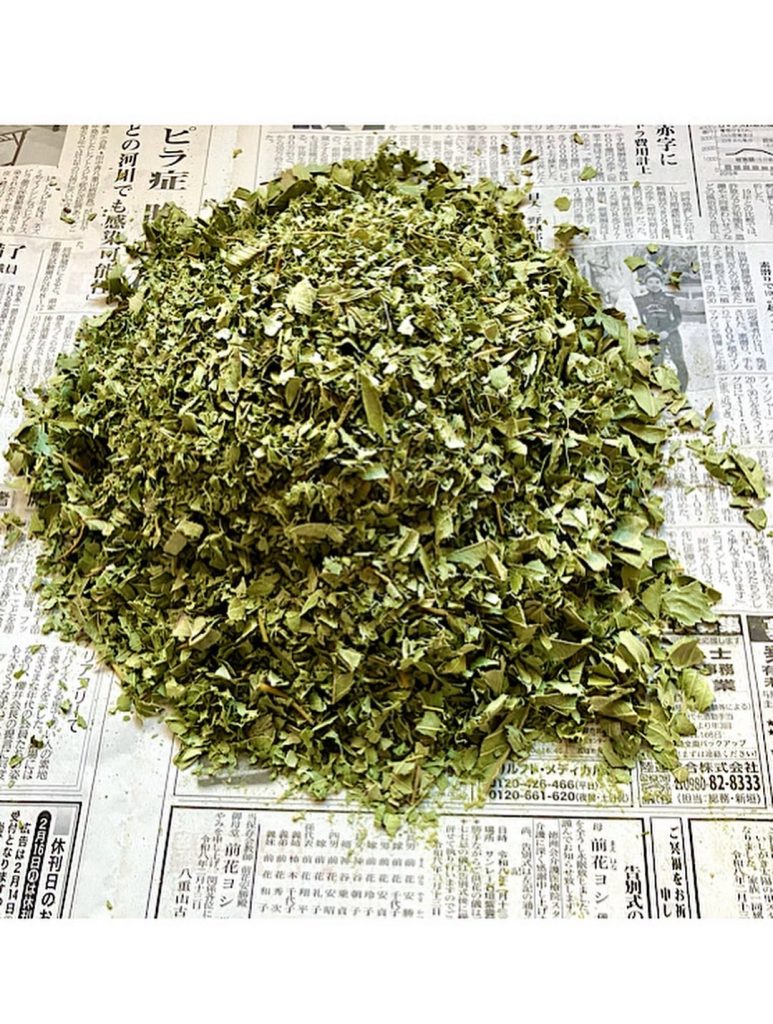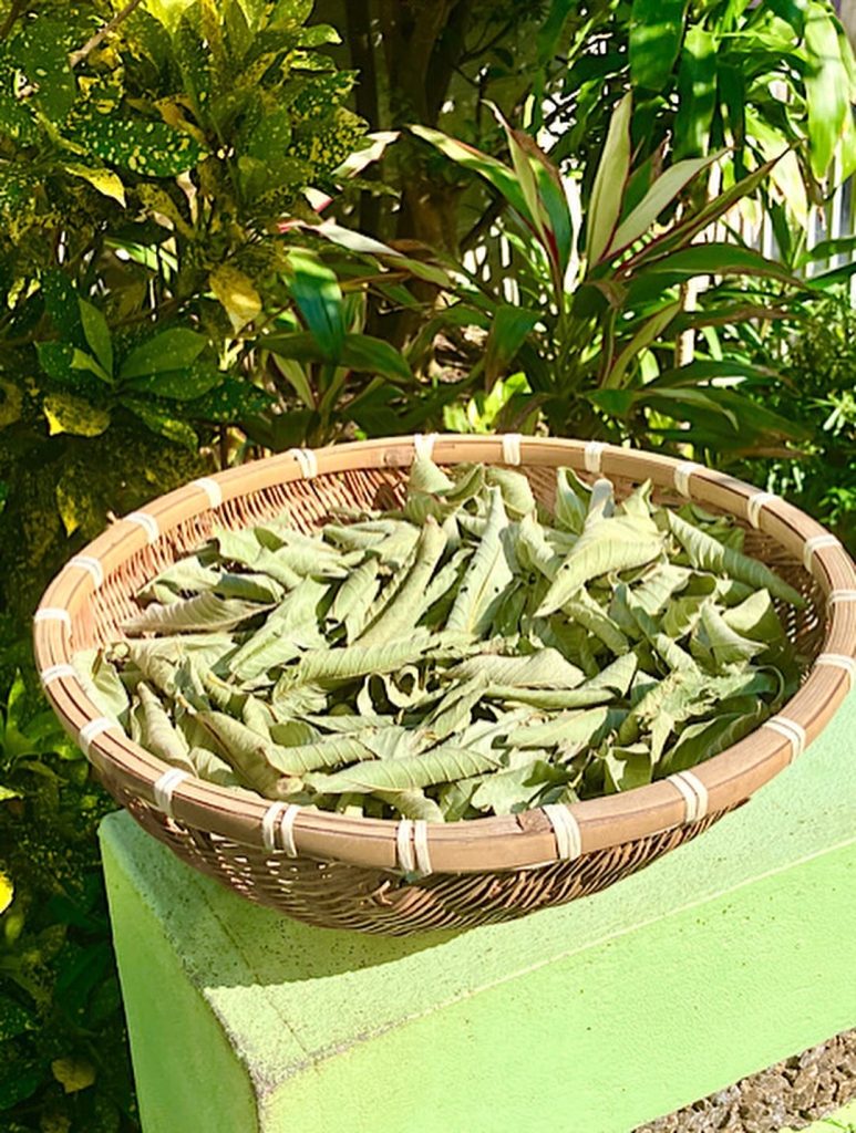 畑でグァバの木が伸び放題だったのを強剪定したのですが、葉っぱが勿体無いので天日に干して手の平で揉み砕いてお茶に仕上げました。
