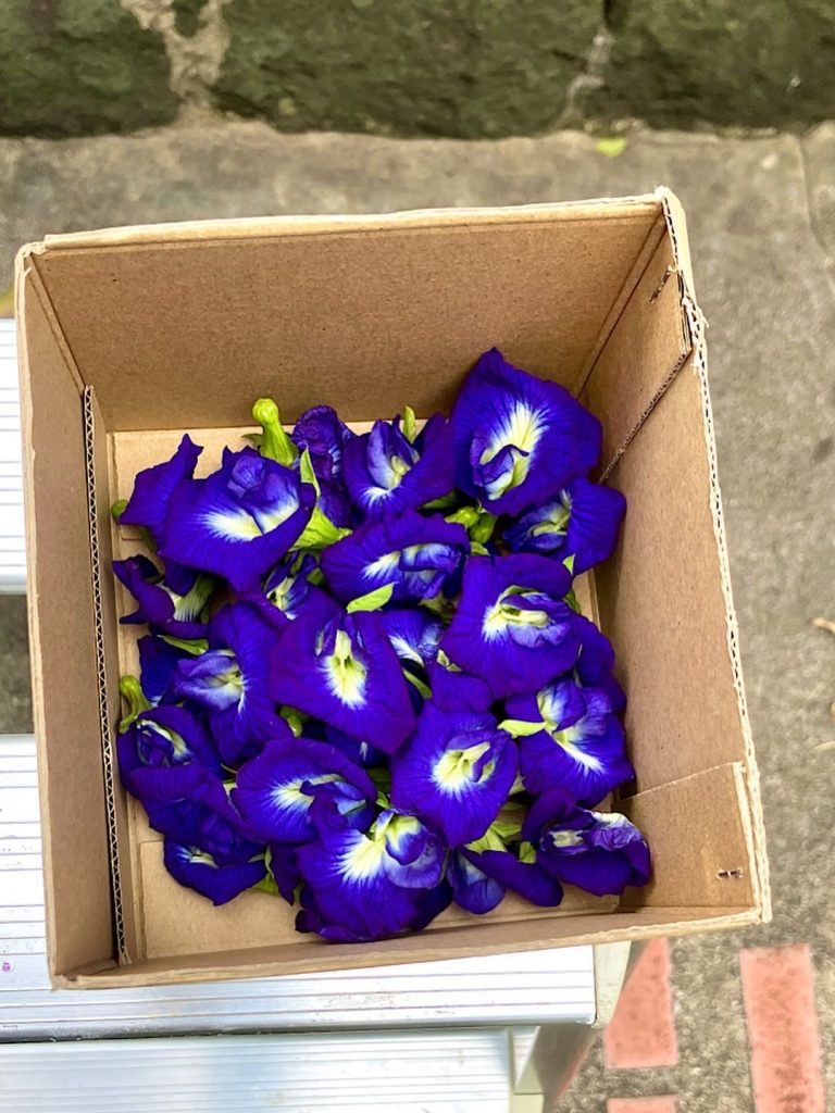 あと、蝶豆(バタフライピー)も毎朝途切れることなく花が咲くので、これも摘んでは天日に干しお茶にしてます。